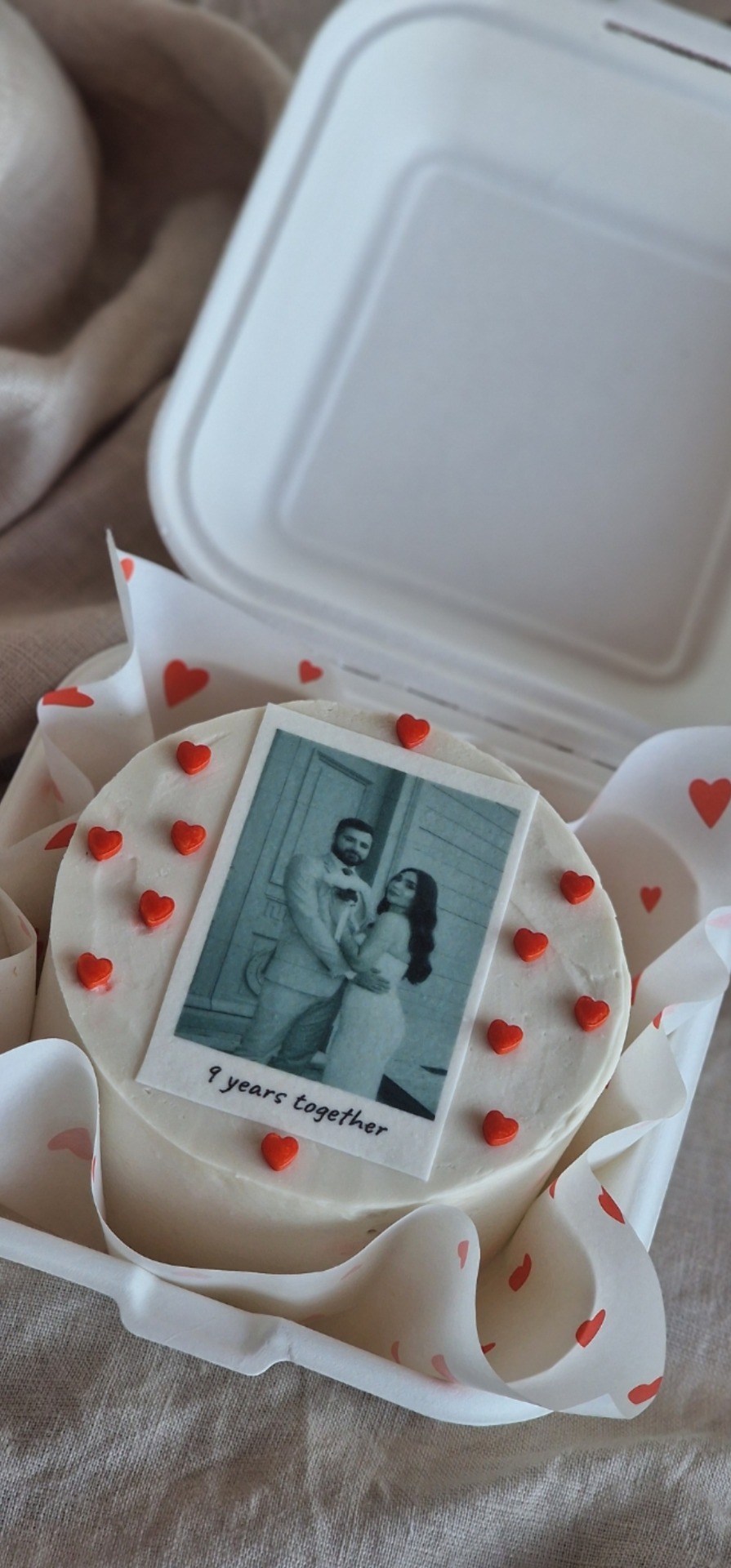 Minitårta för 2-3 personer kommer i en bentobox med en liten sked.